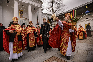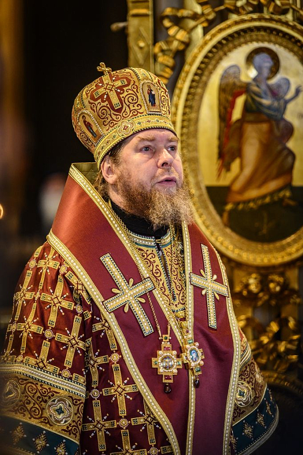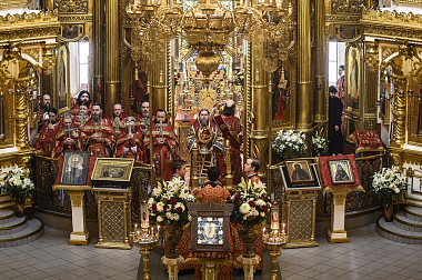 Его Высокопреосвященству сослужила братия обители в священном сане.