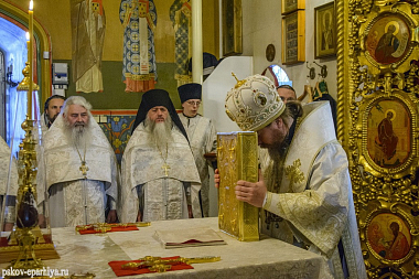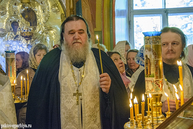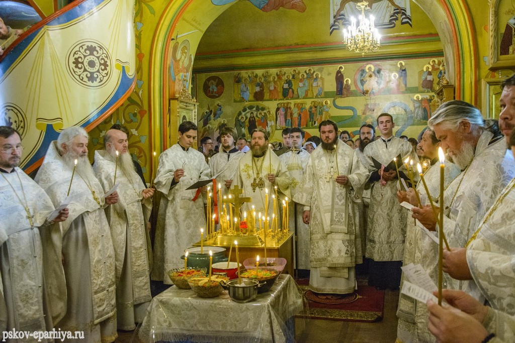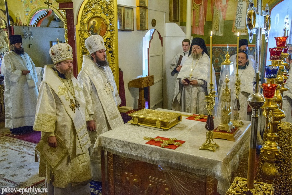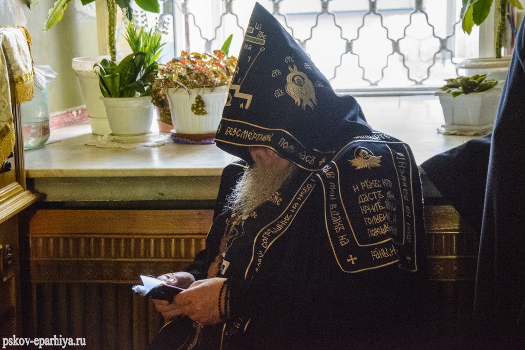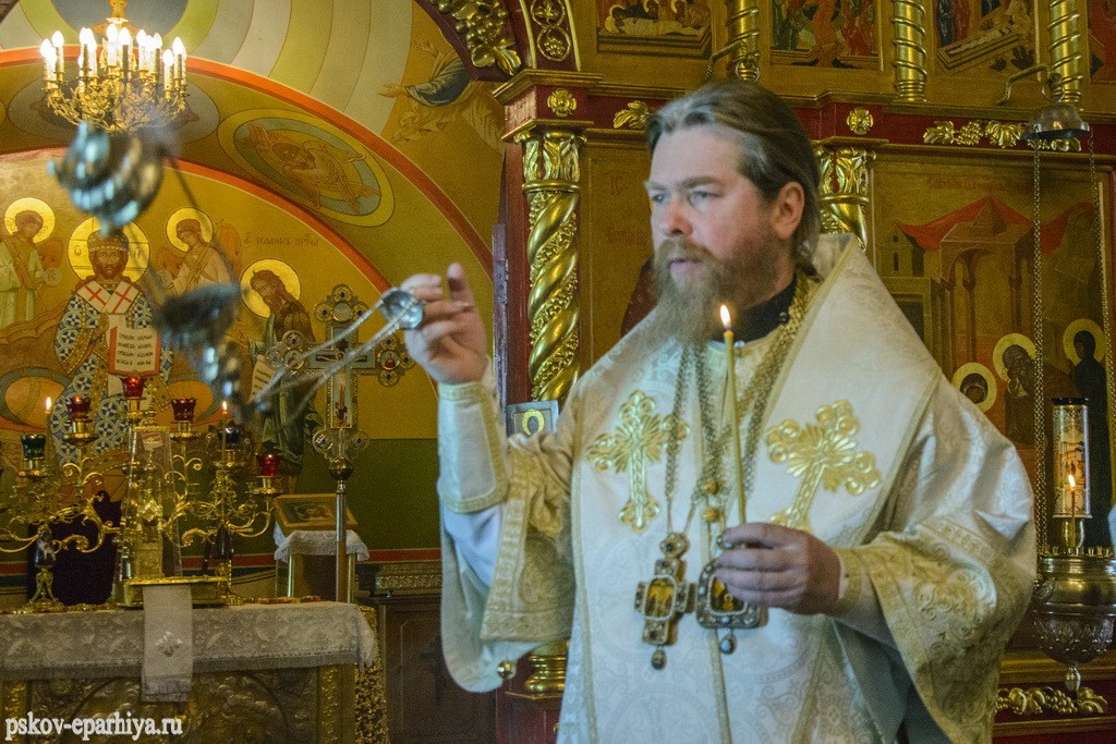Его Высокопреосвященству сослужили: епископ Гдовский Фома, викарий Псковской епархии; благочинный обители архимандрит Филарет (Кольцов) с братией монастыря и гости митрополии в священном сане.