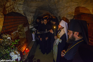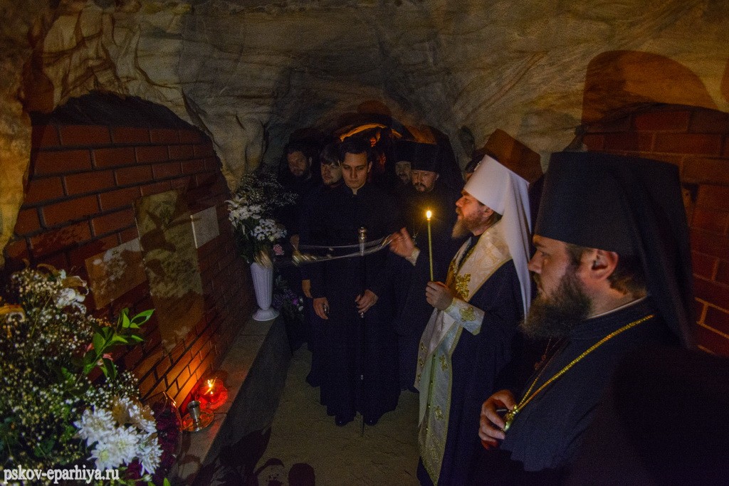 В завершение в Богом Зданных пещерах у могилы старца архимандрита Адриана Высокопреосвященнейшим владыкой была отслужена заупокойная лития.