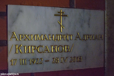 6 июня 2018 года, в 40-й день по кончине архимандрита Адриана (Кирсанова), митрополит Псковский и Порховский Тихон возглавил заупокойное богослужение в Сретенском храме Свято-Успенского Псково-Печерского монастыря.