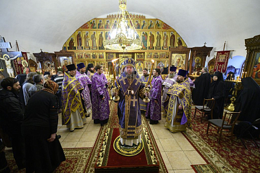 В Никольском храме обители Его Высокопреосвященству сослужили: протоиерей Андрей Вахрушев, секретарь Псковского епархиального управления; протоиерей Александр Савельев, старший клирик Снетогорской обители; иеромонах Иларион (Карандеев), насельник Свято-Успенского Псково-Печерского монастыря; местное духовенство.