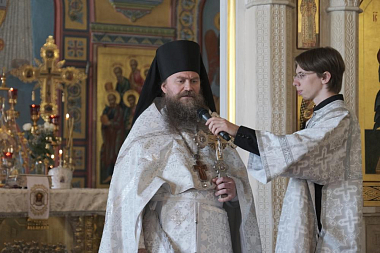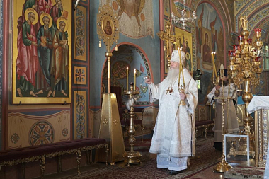 В Христорождественском храме обители Его Высокопреосвященству сослужили наместник монастыря игумен Кирилл (Сурков) с братией в священном сане и клириками монастыря.