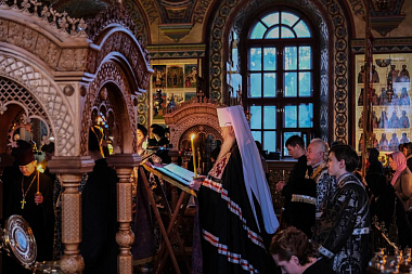 Его Высокопреосвященству сослужила братия Богородице-Рождественского монастыря в священном сане.