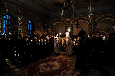 Богослужебные песнопения исполнил хор учащихся Свято-Феофановской духовной семинарии (регент – протоиерей Стахий Нецветаев).