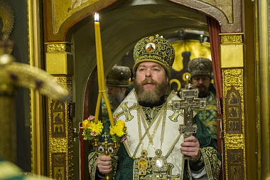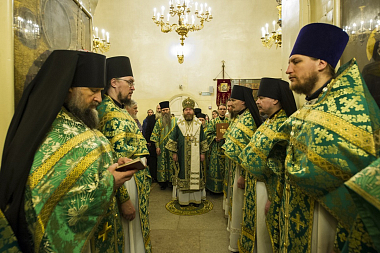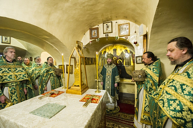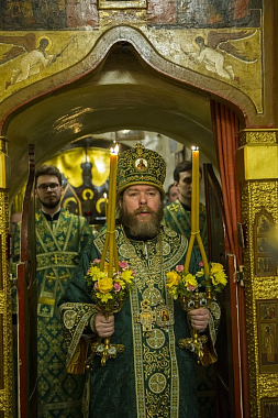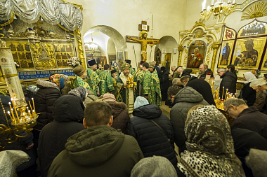 Его Высокопреосвященству сослужили духовенство епархии, братия обители и гости митрополии в священном сане.