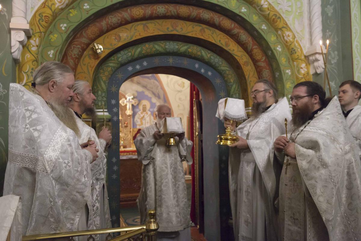Его Высокопреосвященству сослужили благочинный приходов Ростовского округа протоиерей Роман Крупнов, наместник Спасо-Яковлевского Димитриева мужского монастыря Ростова Великого игумен Августин (Неводничек) и клирики Ростовского благочиния.
