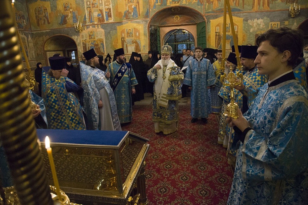 В Крестовоздвиженском храме монастыря Его Высокопреосвященству сослужило духовенство обители.