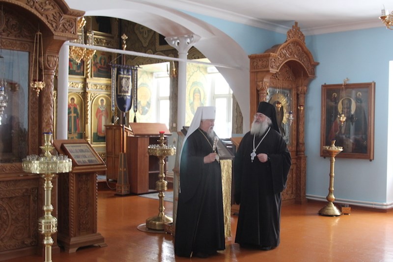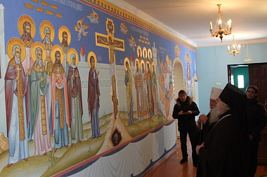 По завершении трапезы митрополит Варнава ознакомился с ходом реставрационных работ в Толгском храме монастыря.