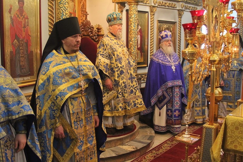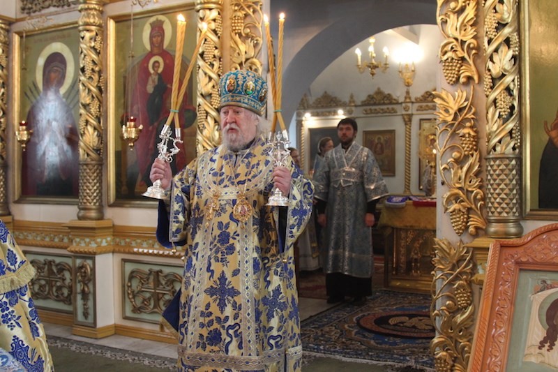 На сугубой ектении были произнесены особые прошения о единстве святого православия, а после сугубой ектении владыка вознес молитву о мире и преодолении междоусобной брани на Украине.
