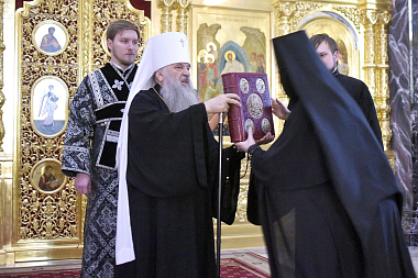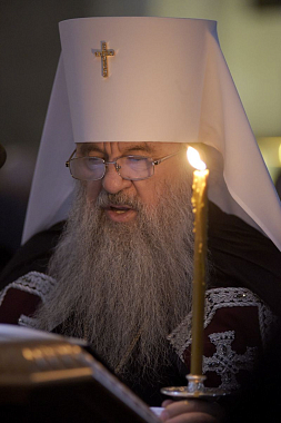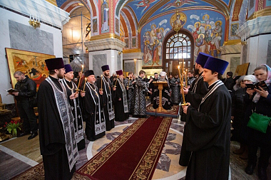 Его Высокопреосвященству сослужили старший священник монастыря иерей Дионисий Харин и духовенство обители.