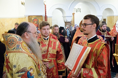 Его Высокопреосвященству сослужили секретарь Епархиального управления протоиерей Сергий Куксевич, клирики монастыря и другие священнослужители.