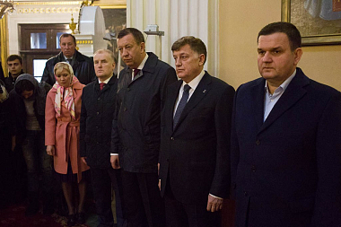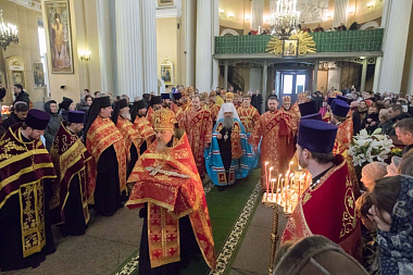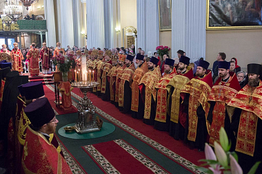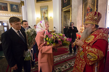 За богослужением молились игумении монастырей митрополии, присутствовали члены правительства города, спикер Заксобрания Вячеслав Макаров.