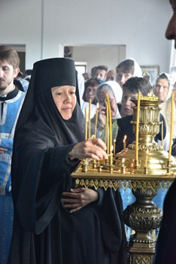 За богослужением молились настоятельница Свято-Никольского Черноостровского женского монастыря Калужской митрополии игумения Николая (Ильина), настоятельница Казанского Девичего монастыря г. Калуги игумения Анастасия (Мордмиллович), настоятельница Свято-Алексиевского монастыря г. Саратова игумения Феодосия (Бессонова), настоятельница Серафимо-Покровского монастыря г. Кемерова игумения Нектария (Седова), настоятельница Вольского Владимирского монастыря игумения Макария (Семенова), настоятельница монастыря в честь Калужской иконы Божией Матери г. Калуги игумения Параскева (Ляхова), сестры Никольской обители, глава Новосергиевского района Оренбургской области А.Д. Лыков, глава муниципального образования Новосергиевский поссовет Новосергиевского района Оренбургской области Ю.П. Банников, верующие окрестных районов.