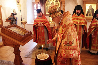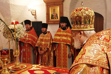 Перед началом богослужения митрополит Виктор почтил место погребения Патриарха Иова в усыпальнице монастыря.