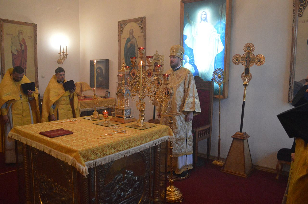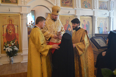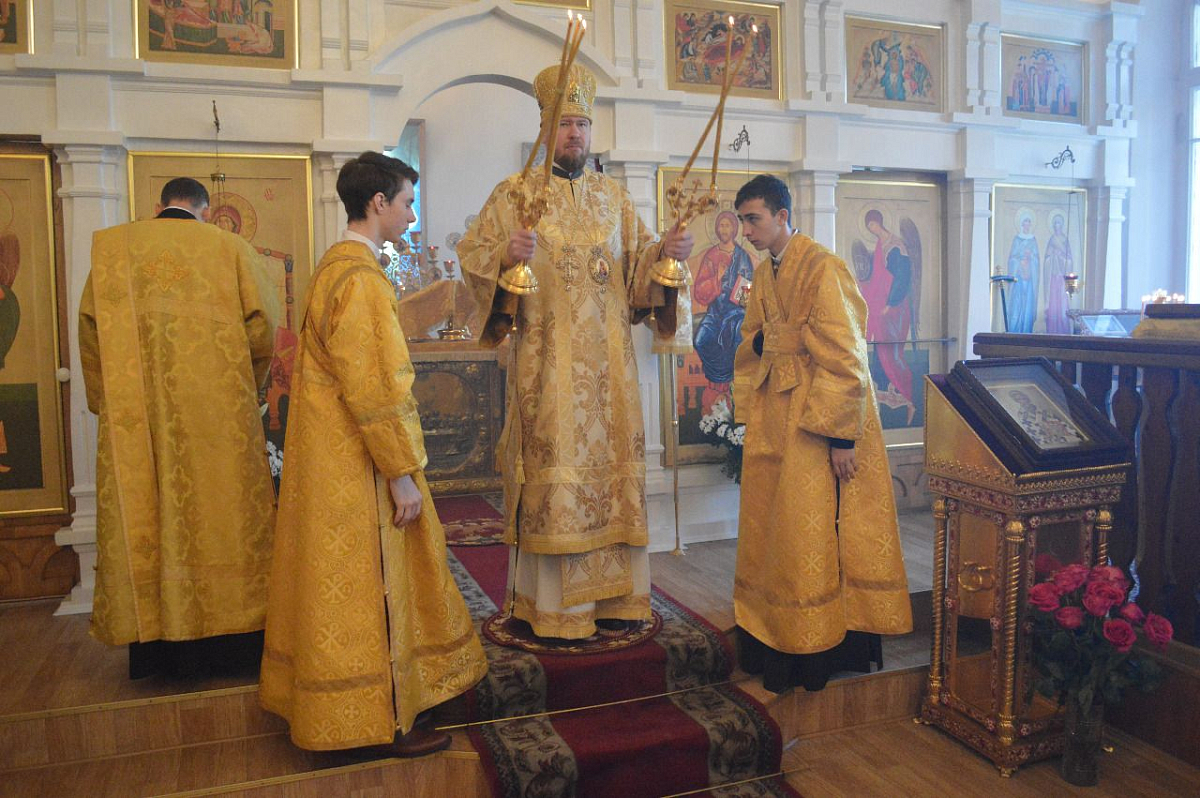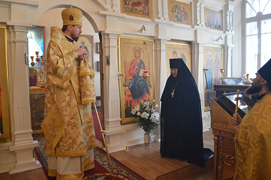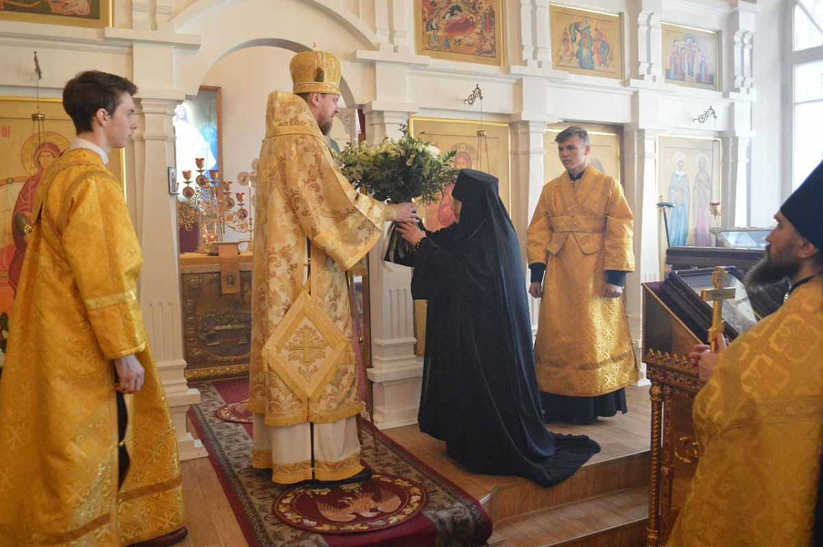 В монастырском храме священномученика Евсевия Самосатского Его Высокопреосвященству сослужили благочинный монастырей Владивостокской епархии, настоятель Свято-Серафимовского мужского монастыря игумен Климент (Кривоносов), протоиерей Вадим Маишев, иеромонах Иннокентий (Корчага), иерей Игорь Спицын.