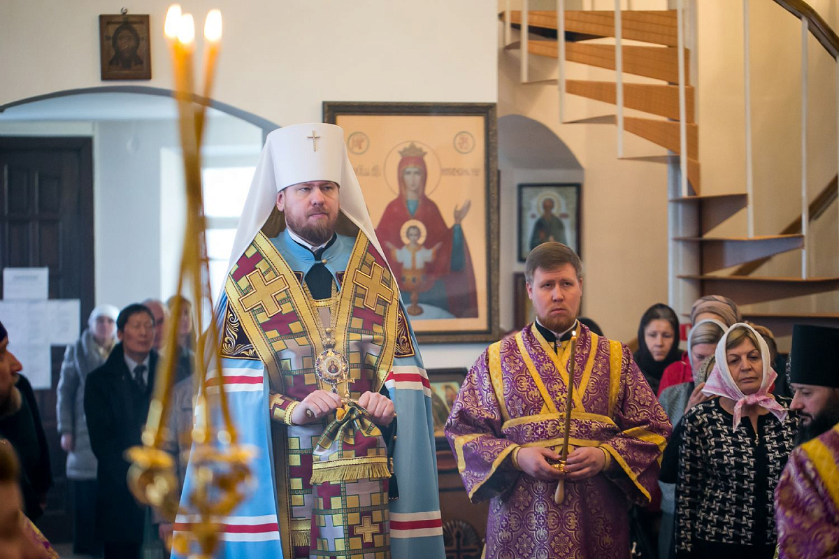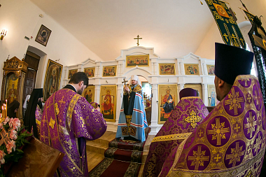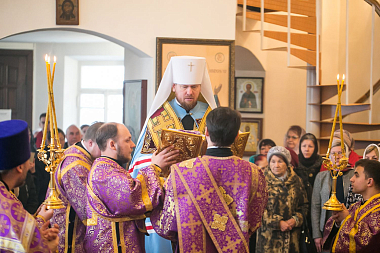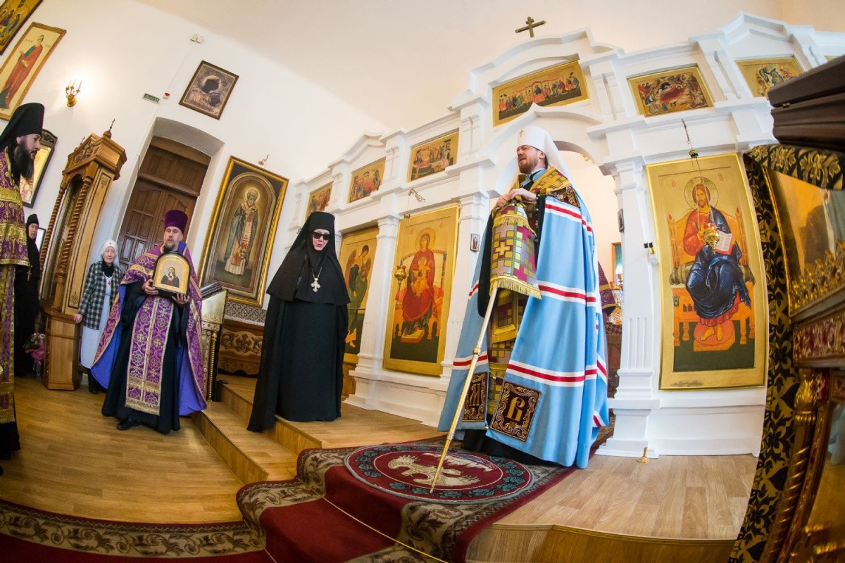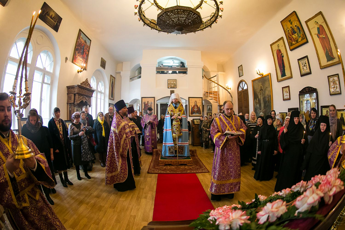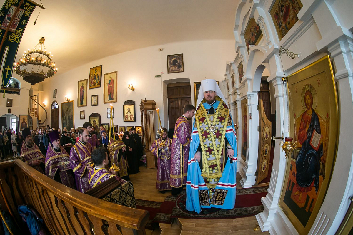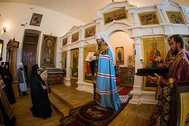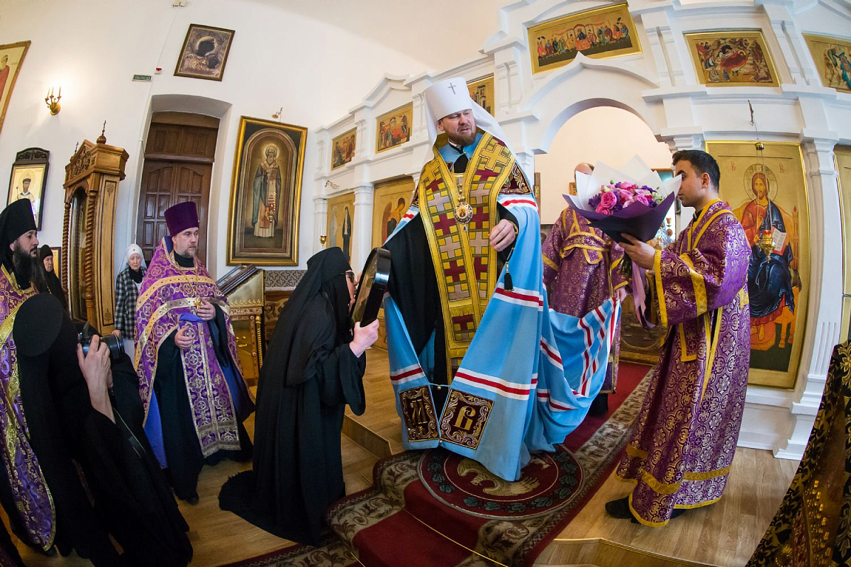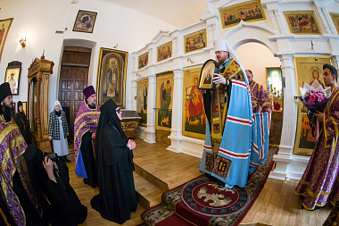 Его Высокопреосвященству сослужили: старший священник обители протоиерей Вадим Маишев, клир монастыря.