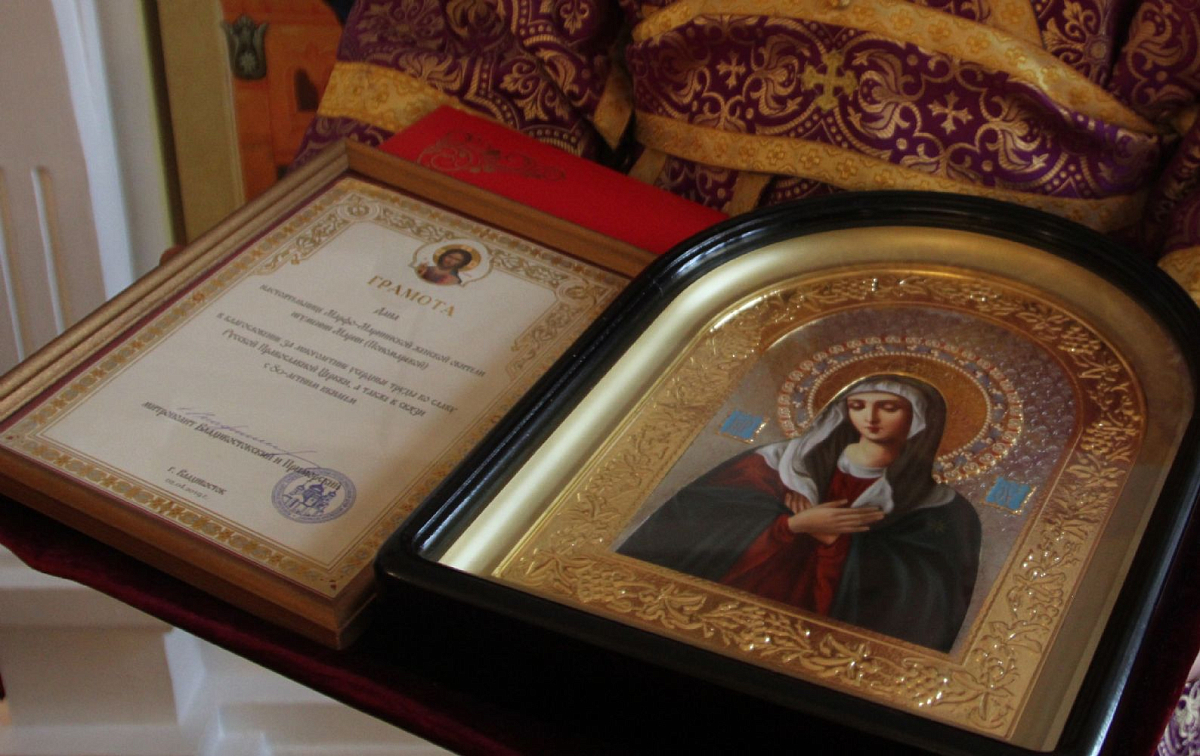 В ознаменование игуменских трудов и в связи с 80-летием митрополит Владимир вручил игумении Марии архиерейскую грамоту и икону Пресвятой Богородицы «Умиление».