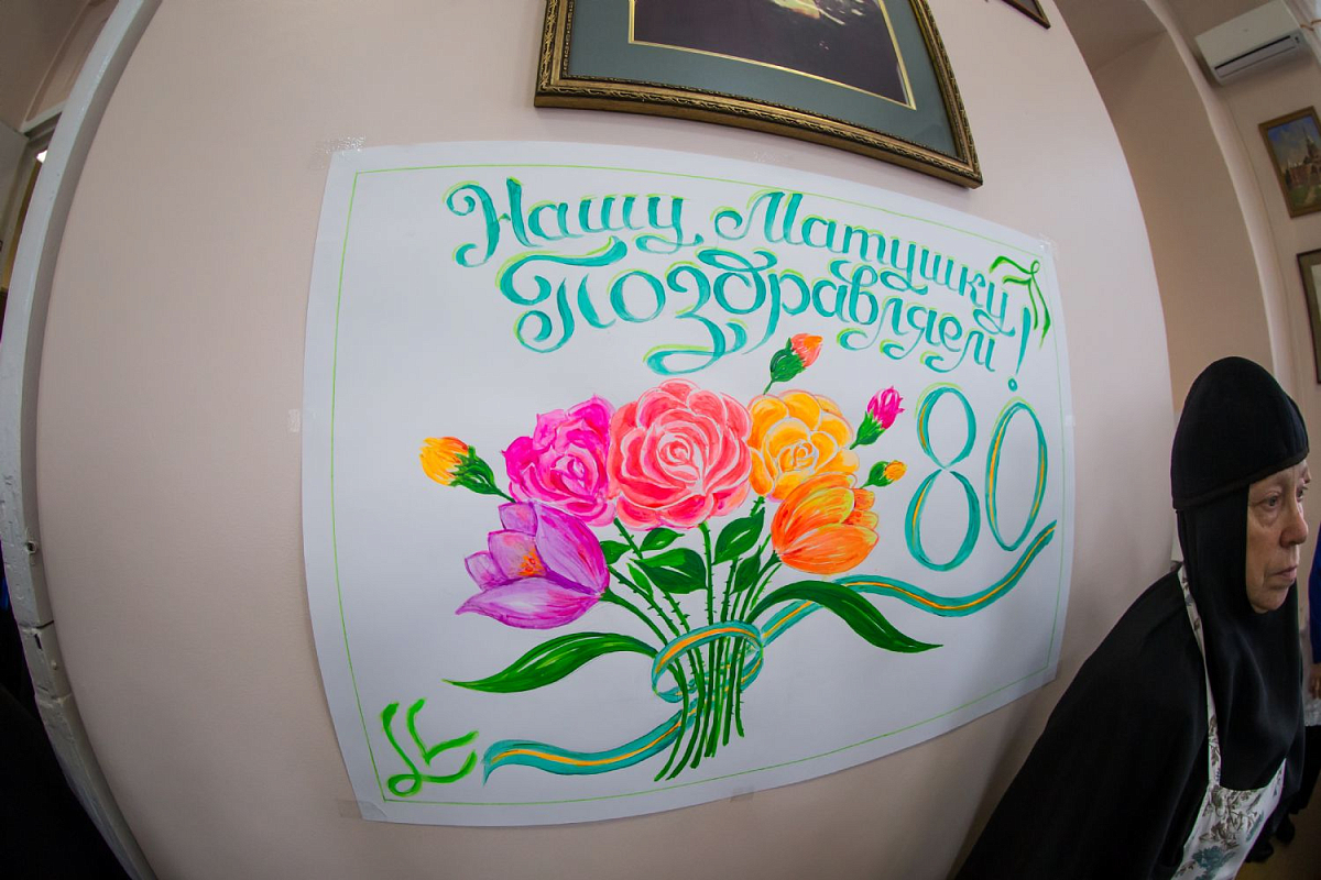 Со словами благодарности за устроение монастырской жизни желаю Вам в этот особый для Вас день Вашего 80-летия помощи Божией в трудах, крепости духовных и телесных сил, мудрости в окормлении обители, терпения в несении Вашего креста. Пусть Господь, даруя Вам радость духовную, ниспошлет с небес Свое утешение, дабы Вы еще многие и многие годы заботились о сестрах, принимали паломников и трудились во Славу Божию!»