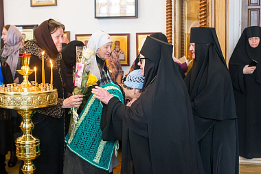 Гости и прихожане монастыря также поздравили настоятельницу Марфо-Мариинской обители со знаменательной датой.