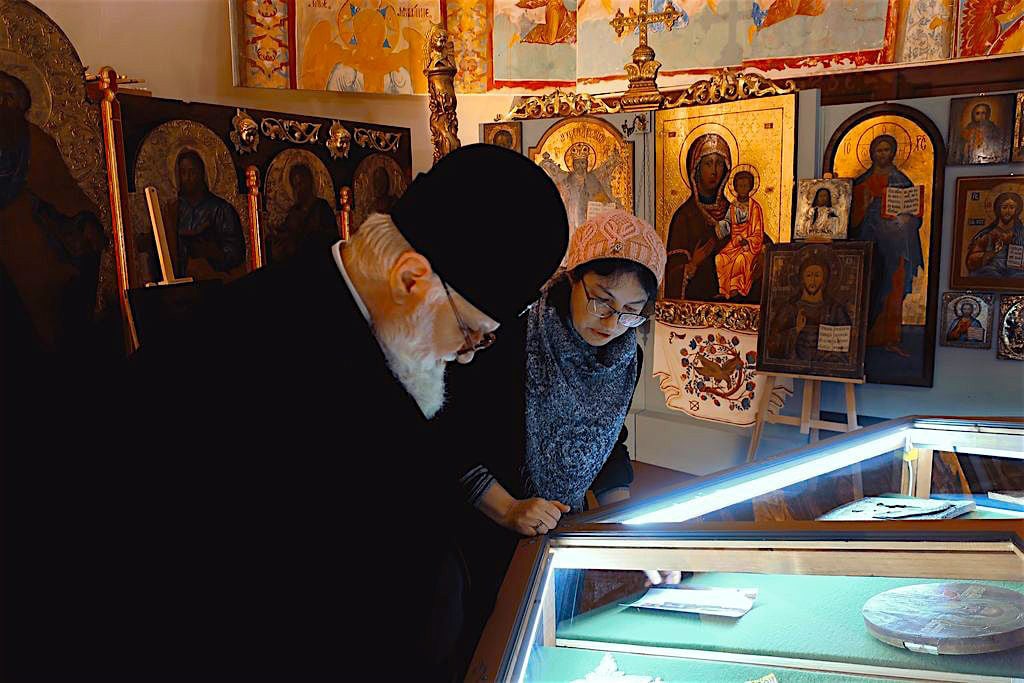 Владыка ознакомился с экспозицией и проведёнными работами в помещении исторической ризницы. В формировании монастырского музея приняли участие около 50 художников, подаривших свои картины, 2 скульптора; 11 человек, участвовавших в оформлении интерьера, изготовлении стендов и экспонатов-копий, реставрации киотов и икон, ремонте помещения и монтировании экспозиции.