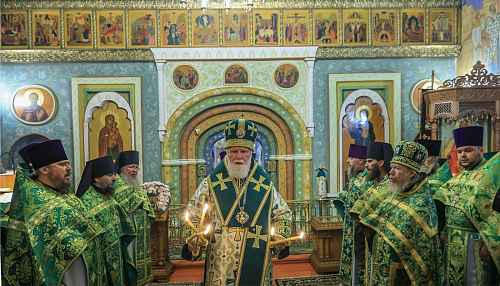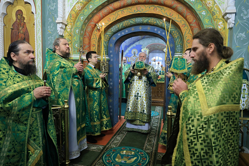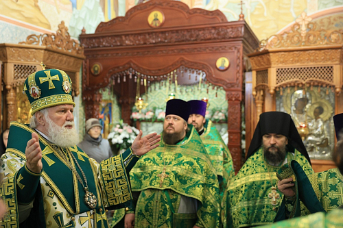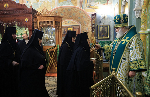 Митрополит Вадим поблагодарил сестер Толгской обители вместе с игуменией Варварой за исполнение богослужебных песнопений.