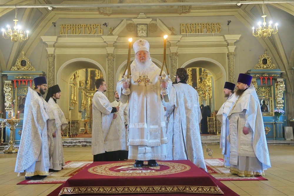 Мне хочется сказать также о том, что все эти недели вместе с духовенством Новодевичьего монастыря я неизменно совершал богослужения в Успенском храме обители и благодарен матушке игумении Маргарите, которая, соблюдая все установления, принятые санитарными органами, создала условия для ежедневного утреннего и вечернего богослужения. Хочу особенно поблагодарить сестер обители, которые усердно сопровождали своим пением и чтением наши богослужения. А сейчас я хотел бы для архипастырей, пастырей и монашествующих и особенно для мирян, пребывающих на территории Московской области, сказать, что согласно нашему обращению главный государственный санитарный врач Подмосковья Ольга Михайловна Микаилова сообщила мне о первом этапе снятия ограничительных мероприятий в связи с эпидемией коронавируса. Согласно этому решению нашим верующим разрешается посещать храмы на территории Московской области в небогослужебное время, а богослужения мы можем совершать на воздухе, около наших храмов, при соблюдении всех санитарных предписаний.