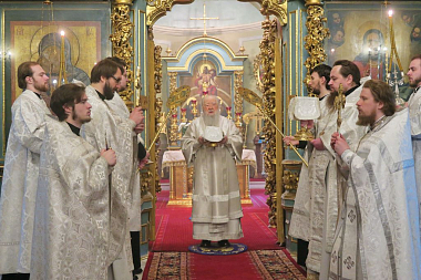 После сугубой ектении Патриарший наместник Московской епархии вознес молитву, чтомую во время распространения вредоносного поветрия.