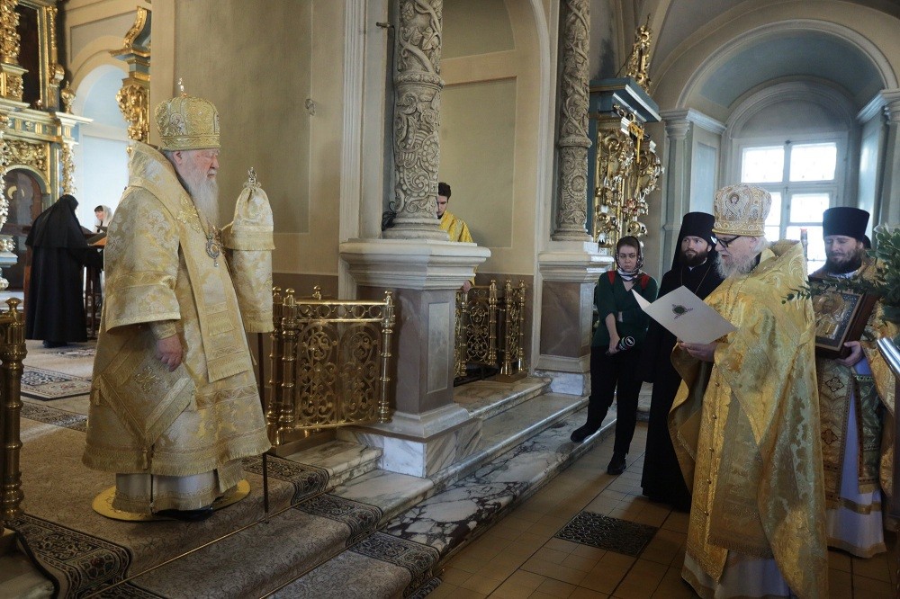 Его Высокопреосвященству сослужили секретарь Патриарха Московского и всея Руси по городу Москве протопресвитер Владимир Диваков, духовенство обители и гости в священном сане. В храме молился епископ Луховицкий Петр.