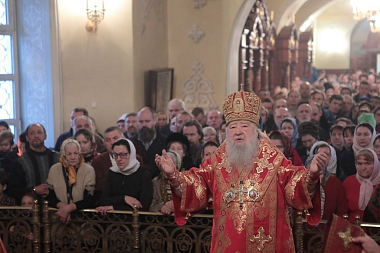 По окончании богослужения с приветственным словом к владыке митрополиту обратился епископ Видновский Тихон: