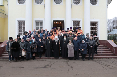 Его Высокопреосвященству сослужили: игумен Екатерининской обители епископ Видновский Тихон, секретарь Московского епархиального управления протоиерей Михаил Егоров, настоятель Христорождественского храма г. Домодедова протоиерей Александр Васильев, благочинный монастырей Московской епархии игумен Евмений (Лагутин); благочинные церковных округов Московской епархии: Видновского – священник Димитрий Березин, Подольского – протоиерей Олег Сердцев, Дмитровского – протоиерей Афанасий Чорногуз, Яхромского – священник Сергий Бернацкий, Домодедовского – священник Андрей Дьячков, духовенство Видновского благочиния.