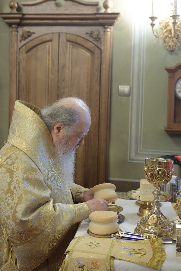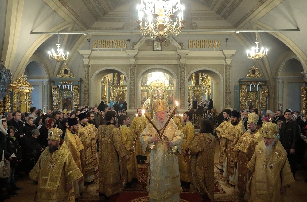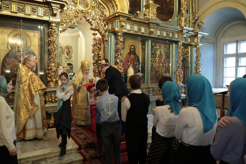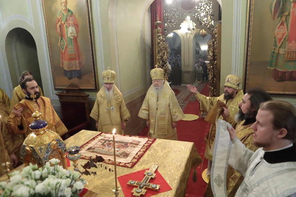 «Возлюбленные братья архипастыри, дорогие отцы, братья и сестры! Горячо и сердечно поздравляю вас с праздником, причастников и причастниц – с принятием Святых Христовых Таин!