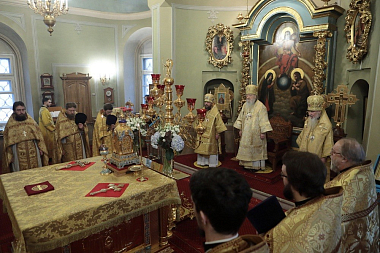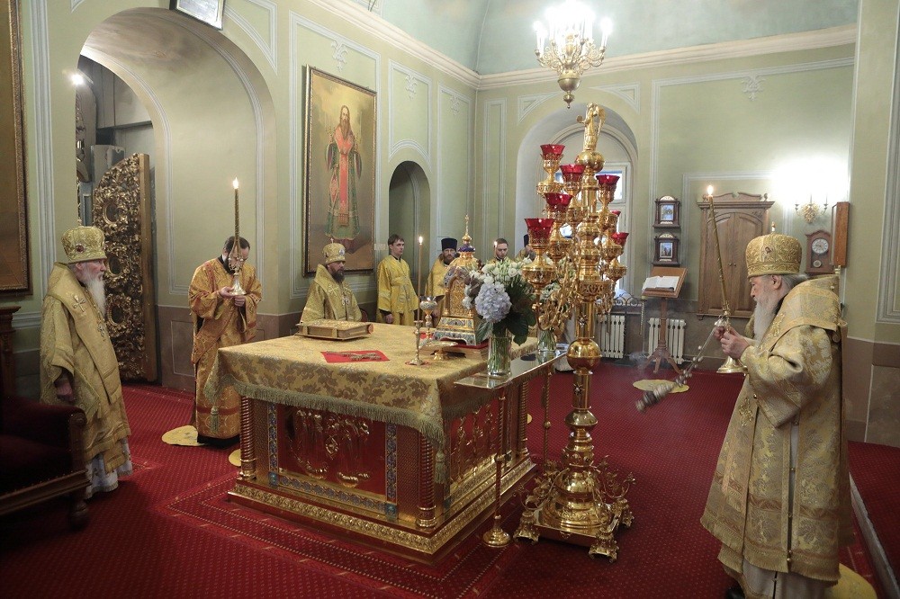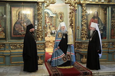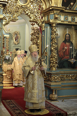 Его Высокопреосвященству в Успенском храме обители сослужили митрополит Берлинский Германский Марк, епископ Северобайкальский Сосново-Озерский Николай и духовенство обители.