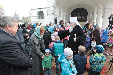 В завершение праздника владыка митрополит вместе с заместителем полномочного представителя Президента Российской Федерации в Центральном федеральном округе Н.П. Овсиенко, настоятельницей монастыря игуменией Маргаритой (Феоктистовой) и юными прихожанами выпустил на свободу голубей с паперти Смоленского собора обители.