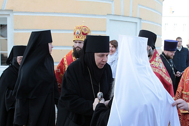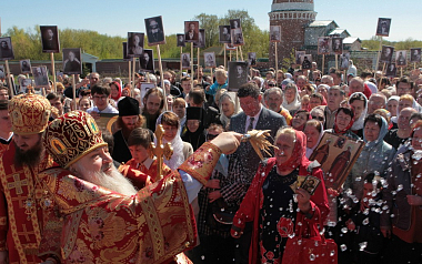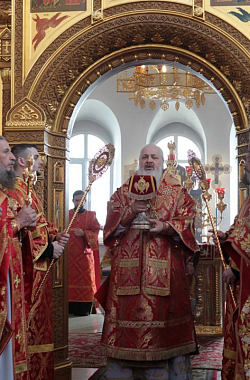 Я благодарю владыку Петра за приветствие и организацию этого духовного торжества. Очень хорошо, что написана такая прекрасная икона, изображающая подвиг наших коломенских новомучеников. Это своего рода букварь, по которому мы можем, не зная истории, учиться подвигу этих святых. Я поздравляю причастников и причастниц с принятием Святых Христовых Таин. Благодарю всех вас за то, что в этот праздничный день вы пришли в древнюю обитель, чтобы вместе помолиться и испросить благословение наших новомучеников на свою жизнь, на свои труды, на свое служение. На всех вас призываю Божие благословение и благословение новомучеников и исповедников коломенской земли. Христос воскресе!»