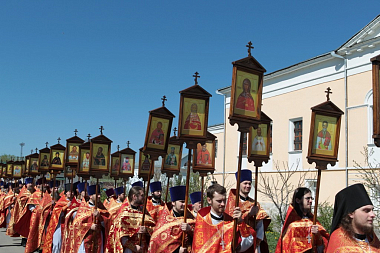После Божественной литургии состоялся крестный ход с ковчегом со святыми мощами новомучеников и исповедников Церкви Русской. Верующие пронесли по территории Старо-Голутвина монастыря специально изготовленные к этому дню хоругви с иконами и фотографиями сорока пяти коломенских новомучеников.