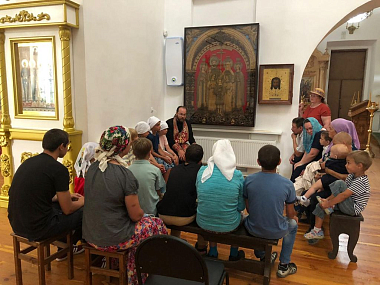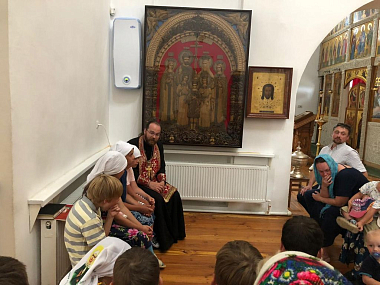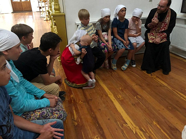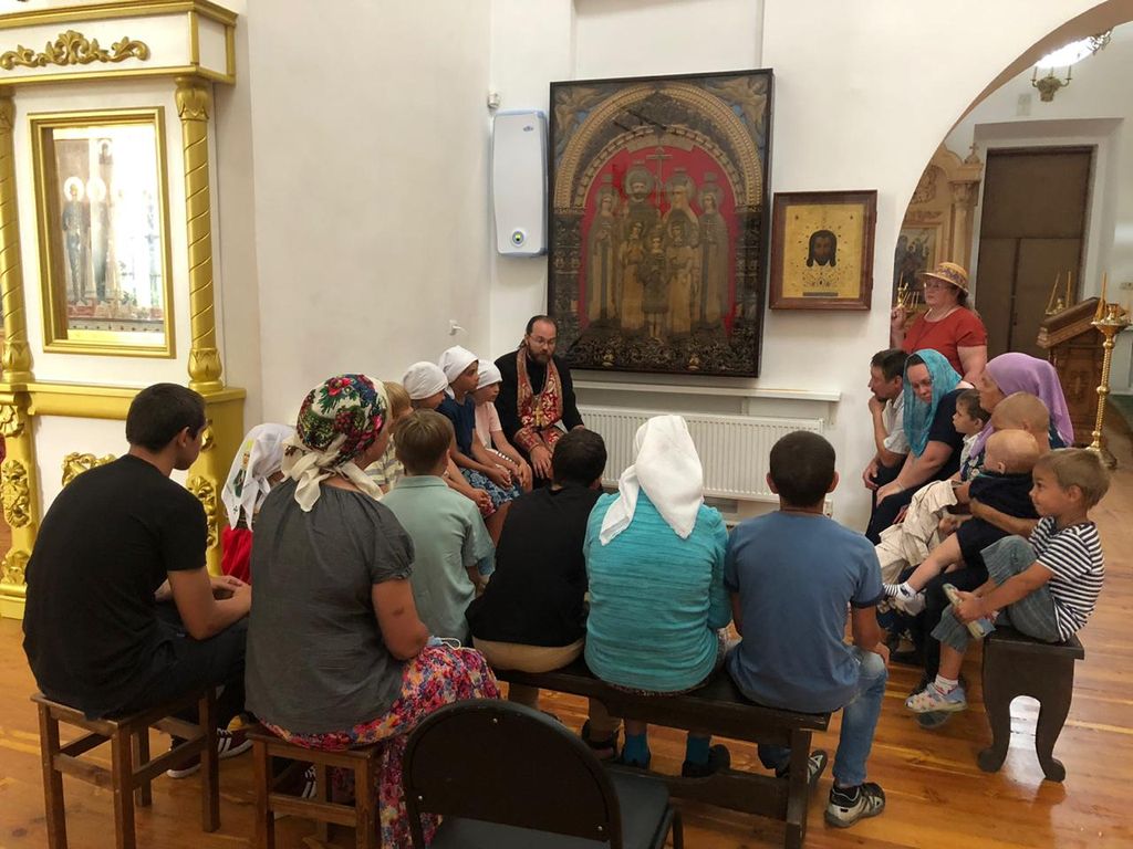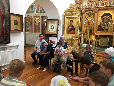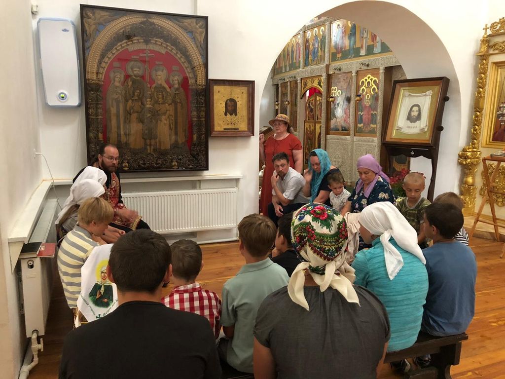 Затем отец Тихон побеседовал с детьми и родителями о значении царской власти в России, о мученической кончине царской семьи, о воспитании детей в православной вере.