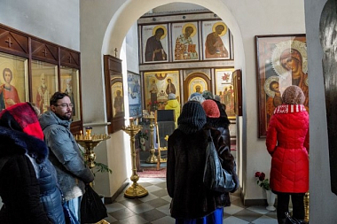 Потом все доехали до Напольной школы, где провели свои последние дни жизни Елисавета Феодоровна, инокиня Варвара и члены Царской фамилии. В настоящее время здание школы закрыто, поэтому паломники смогли посмотреть на нее только снаружи и пойти дальше, где в шаговой доступности расположился Свято-Елизаветинский монастырь – скромное здание обители с домовым храмом на втором этаже, а там икона с частицей мощей преподобномученицы Елизаветы.