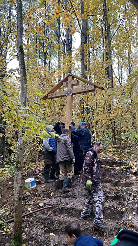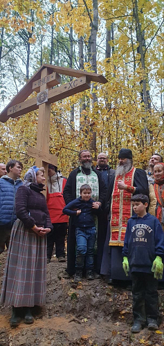 Паломников радушно встретил благочинный монастырей Орловской епархии, наместник обители святого Кукши игумен Иоанн (Бирюков). Отец Иоанн принял участие в установке и освящении Поклонного креста. После совместных трудов дорогих гостей пригласили на братскую трапезу.