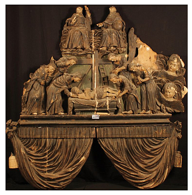 17 июня в СПбГХПА им. А.Л. Штиглица на кафедре живописи и реставрации состоялась защита выпускной квалификационной работы «Реставрация фрагмента резной сени Царских врат XVIII века из музея Александро-Невской лавры» (рук. – Е.В. Бердичевская, студент – Е.Ю. Кузина) по профилю «Реставрация декоративно-прикладного искусства». Резная сень является фрагментом деревянного резного иконостаса, Царские врата которого представлены в экспозиции «Древлехранилища». Защита ВКР стала промежуточным этапом в реставрации музейного предмета, которая будет продолжена в последующие годы.