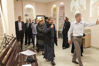 Вместе с владыками музейную экспозицию осмотрели известные российские историки: доктор исторических наук С.П. Карпов, академик РАН, президент исторического факультета МГУ; доктор исторических наук А.Б. Безбородов, директор Историко-архивного института РГГУ.