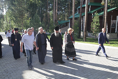 Епископ Егорьевский Тихон, викарий Святейшего Патриарха Московского и всея Руси, наместник Сретенского ставропигиального мужского монастыря, митрополит Екатеринбургский и Верхотурский Кирилл и епископ Среднеуральский Евгений посетили музейно-выставочный центр монастыря Святых Царственных страстотерпцев.