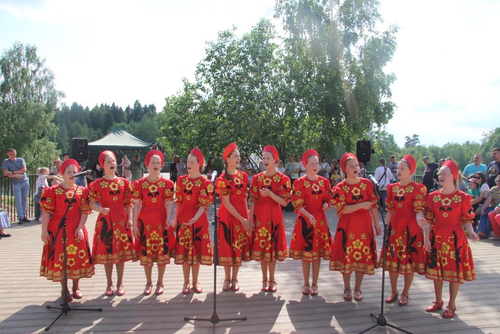 Выступление «Отрады» было организовано на смотровой площадке над рекой. Яркие, искусно вышитые и украшенные костюмы, эмоциональное исполнение никого не оставили равнодушными. Жители Балабаново и гости праздника очень тепло встретили танцы и песни в исполнении девочек.