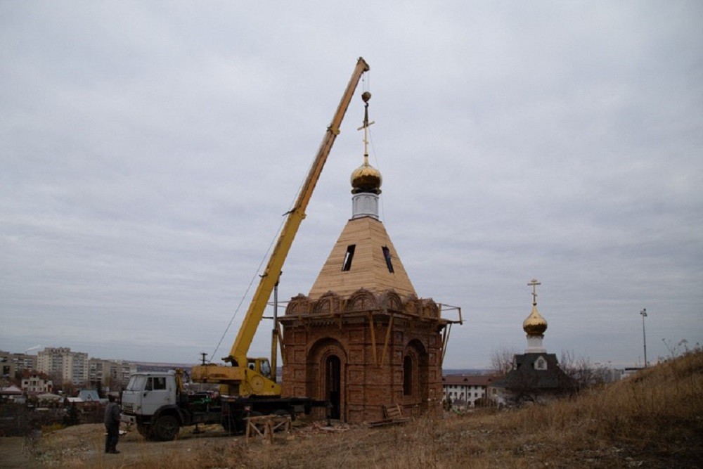 У источника на часовню вначале был установлен и закреплен барабан, потом поднята и укреплена главка, увенчанная крестом.