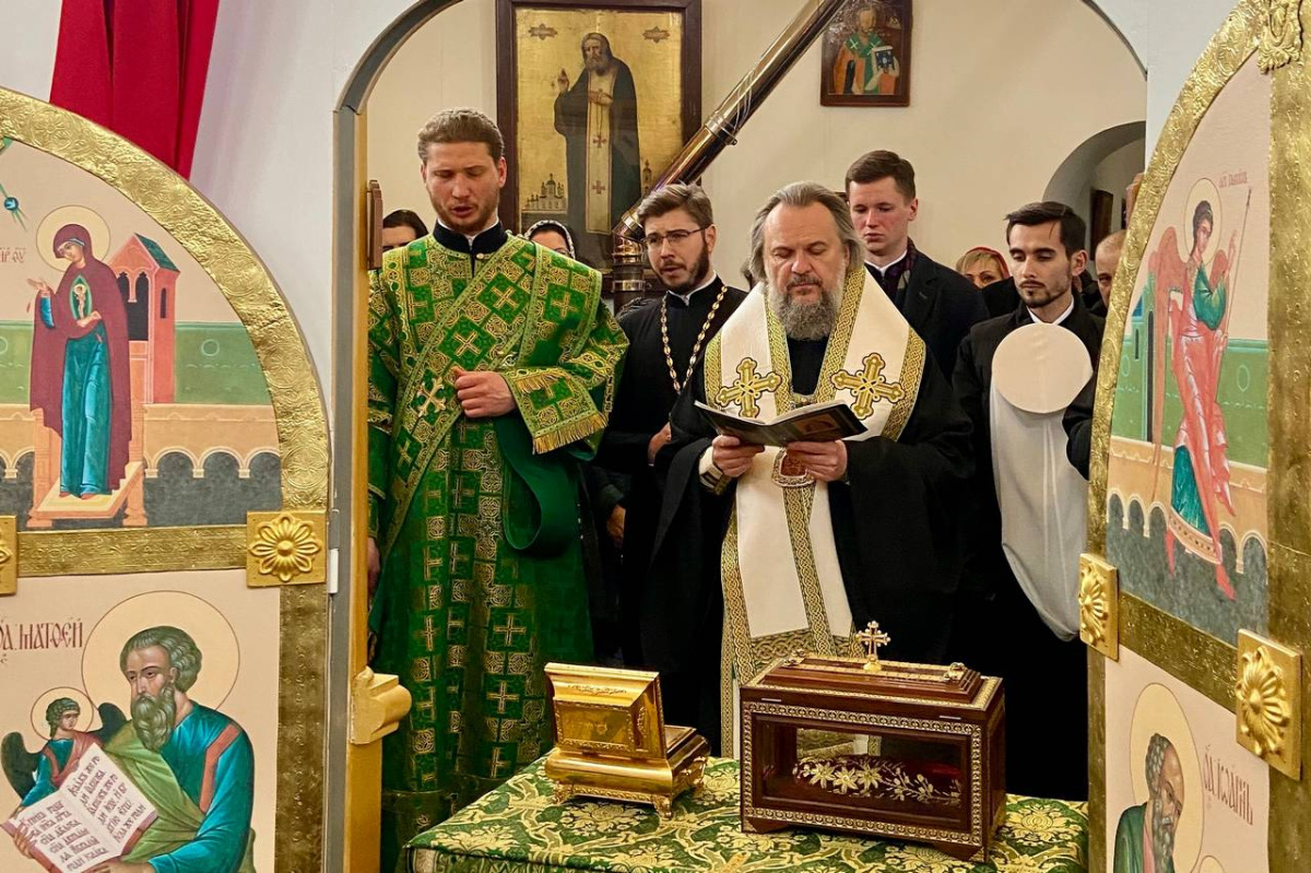 После молитвы преподобному Макарию митрополит Амвросий прочитал также молитву преподобному Алексию, человеку Божию, в честь которого некогда в монастыре существовал храм. Затем архипастырь осенил молящихся святым крестом и окропил их крещенской водой.