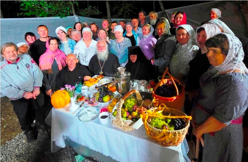 В ночь с 18 на 19 августа в скит прибыли игумения Неонилла с насельницами и трудниками монастыря, протоиерей Евгений Султанов с пономарем-послушником, верующие люди из станиц Ставропольской, Григорьевской и Смоленской, семьи воинов из хутора Молькино (некоторые приехали с маленькими детьми), представители казачества, местные лесники и рабочие. В итоге в скиту собралось более 70 человек.