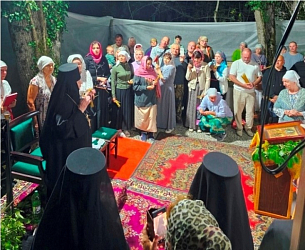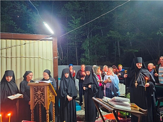 Перед началом службы певчие сестры спели песнопение иеромонаха Романа (Матюшина) «Иерусалим», а затем матушка Неонилла поделилась с собравшимися воспоминаниями о своем первом и незабываемом посещении службы Преображения Господня на горе Фавор в Святой Земле более 20 лет назад.