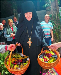 После панихиды позвонили в колокол, священник прочел молитву на освящение винограда и плодов, освятил их и окропил крещенской водой всех присутствующих.