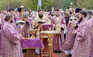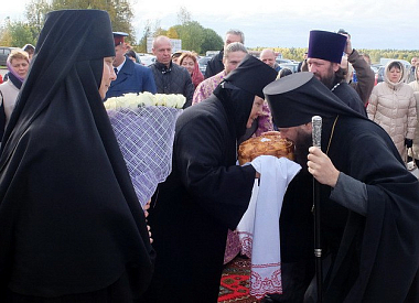Затем епископ Переславский и Угличский Феодор возглавил чин освящения воздвигнутого креста, являющегося копией Животворящего Креста Господня, находящегося в настоящий момент в храме Свт. Иоанна Златоуста в с. Годенове.