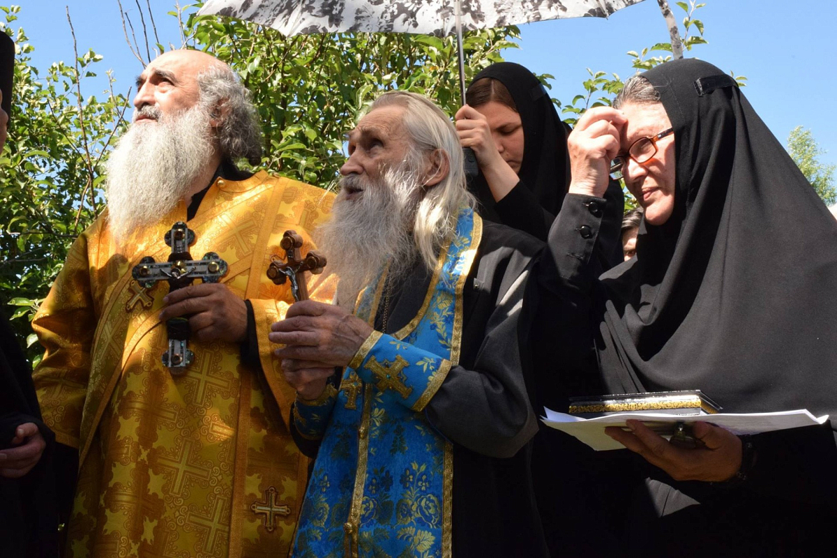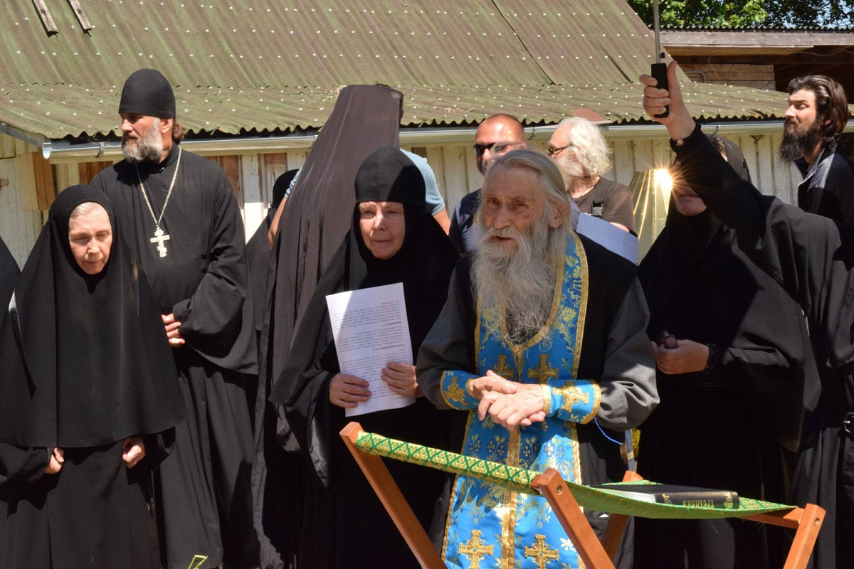 По благословению преосвященнейшего Никиты, епископа Козельского и Людиновского, духовник обители схиархимандрит Илий (Ноздрин) совершил чин освящения креста и куполов строящегося на месте сгоревшего 25 января 2017 года домового храма обители.