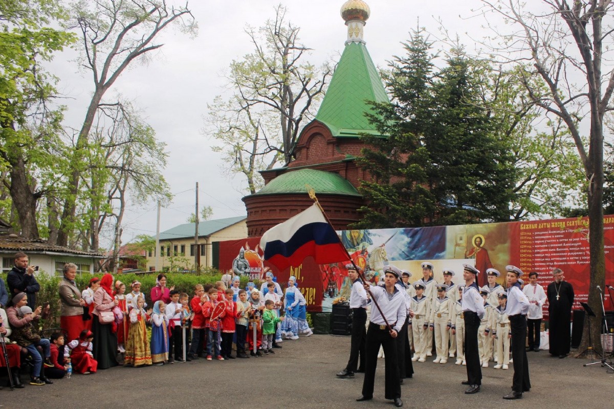 В программе концерта состоялось праздничное выступление с исторической сценкой, подготовленное детьми прихода. Ребята из клуба «Юный Патриот Родины» исполнили песни «Бескозырка белая», «Служу России» и «Владивосток». Учащиеся второго класса Православной гимназии – общины Александра Невского – выступили перед зрителями с патриотическим стихотворным номером. Балладу об Александре Невском зрителям подарил исполнитель бардовской песни Александр Левенко. Девушки из студии танца «Pineapple Dance» исполнили народный танец «Реченька».